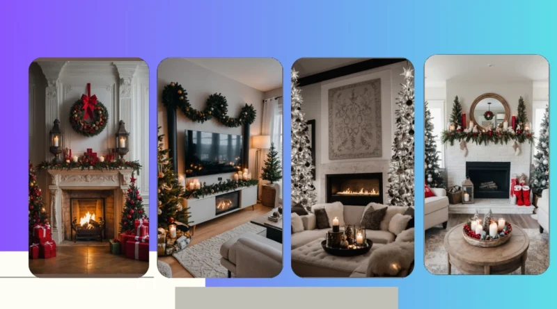 Step right up to the most Instagram-ready spot in the Christmas living room! This mantelpiece isn’t just decorated; it’s practically throwing a silent, elegant party. Look at those little frosted trees, standing tall like a fancy winter forest, probably whispering secrets about who’s getting the best presents this year. And the candles? They’re all lined up, flickering away, probably competing for the “most glow-up” award. You can almost hear them humming festive tunes while making the whole room feel super cozy.