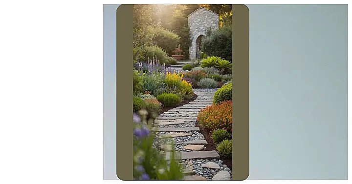 Forget boring lawns that look like golf courses. This garden is basically a plant party that got a little out of control, in the best way possible, showing off true cottage garden spirit with colors and textures everywhere. The stone path winds through like it’s trying to find its way through a colorful crowd of flowers and bushy green things, looking a bit like stepping stones across a plant river. It’s giving off serious cozy vibes, making you feel like a magical cottage should be hiding just around the bend, possibly handing out free lemonade and advising you on your life choices. The plants here aren’t lined up like soldiers; they’re just happily doing their own thing, blooming wherever they feel like it.