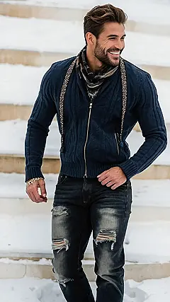 Formal looks may seem heavy and drab in cold weather, but not if you know how to make a statement! Imagine stepping into an event wearing a smart blazer over a fitted sweater, paired with tailored trousers. You’ll not only be the most stylish guy in the room but will also feel cozy instead of like a popsicle! Who knew that warmth could marry class so well?