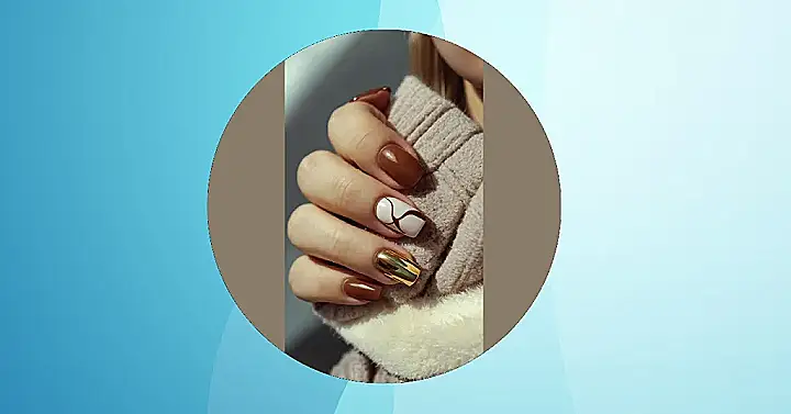 These nails are totally giving us autumn vibes! The rich brown polish is perfect for the season, and the gold accents add a touch of glam. We bet these nails are so strong, they could totally handle a scorpion’s sting! But honestly, the best part of this look is the white nail with brown lines on it. It’s like a mini masterpiece on your finger! Don’t you wish you could draw as well as this nail artist?