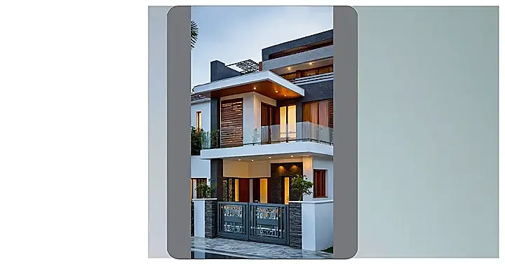 Guess what? This house looks like a bungalow that took an extra protein shake and decided to go vertical! Forget your usual single-story digs, this stunner from the image decided it needed a whole second floor and a swanky balcony for maximum chill. It’s got those cool white walls, fancy stone accents, and massive glass doors that probably let in so much light, you’d never need to turn on a lamp, even for late-night snack raids. You can almost picture yourself waving dramatically from that upstairs balcony, pretending you’re a movie star or just shouting down for someone to toss you a juice box.