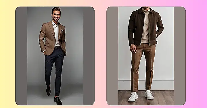 Staring at this guy, you might think, “Wait, brown on brown? Is this a fashion dare or something?” But hold up, because this outfit is basically a masterclass in looking effortlessly cool. Forget those days of mismatched hoodies and sweatpants (we’ve all been there, no judgment!). This combo of a rich brown jacket and that cozy-looking beige turtleneck screams “I know what I’m doing, and I probably aced that history test.” It’s the kind of vibe that says you’re put-together without even trying, which is basically the holy grail of stylish men’s outfits.
