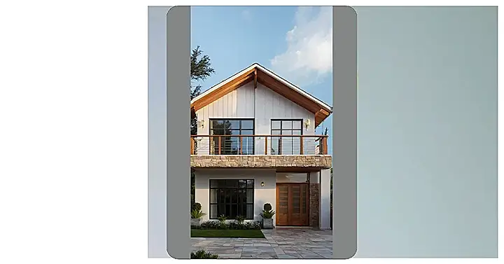 This house is like a super cool remix of a classic song! You see the basic shape of the roof? That’s pretty old-school, kind of like what you might see in a history book. But then BAM! They throw in these sleek, modern windows and a balcony that’s just begging for a chill hangout session. It’s like your grandma’s recipe, but with a splash of hot sauce.