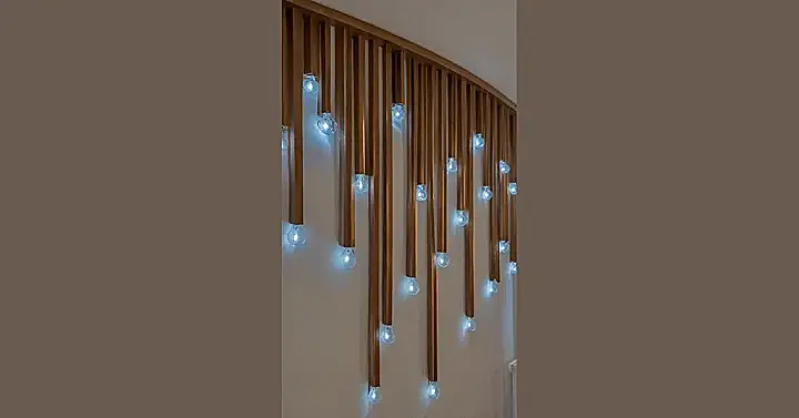 Are you tired of staring at a blank wall that does nothing but… exist? Check out this awesome bedroom wall decor idea that’s anything but boring! It’s like a cool art installation where vertical wooden planks decided to throw a party, and each invited their own little light bulb friend. These glowing pals hang out, making your wall sparkle and giving off major ‘I’m living in a super chic, artsy space’ vibes. Your room will totally level up from ‘just a bedroom’ to ‘the coolest hangout spot in the house!’