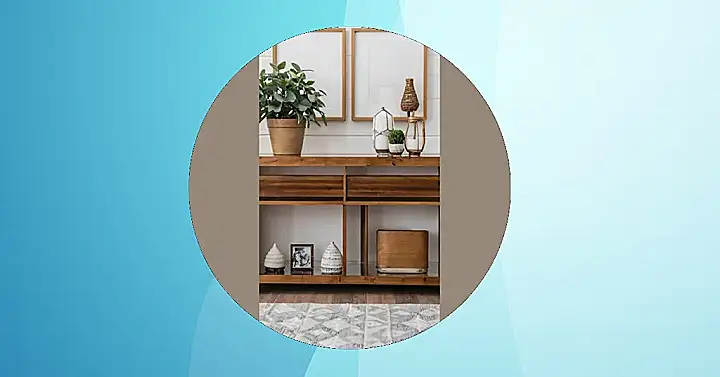 This wooden console is seriously the cutest thing! It’s like a little wooden village for all your favorite home decor items. Look at those stylish little pots and vases, and that super-chic plant! It’s giving me major “cozy cabin” vibes, even though it’s probably in someone’s super-fancy house. I bet you could fit a whole bunch of wooden home decor items on those shelves – maybe even a tiny wooden gnome!