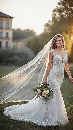 Seriously, this mermaid wedding dress is something straight out of a fairytale, or maybe an epic ocean saga. The lace details are gorgeous, almost looking like delicate coral or shimmering ocean foam stitched right onto the fabric. And check out that train! It flows out like the most majestic mermaid tail ever, making you feel like pure royalty gliding across the floor. Just try not to get it caught on anything, because untangling a mermaid tail, even a dress one, sounds like a hilarious wedding photo opportunity you might want to avoid.