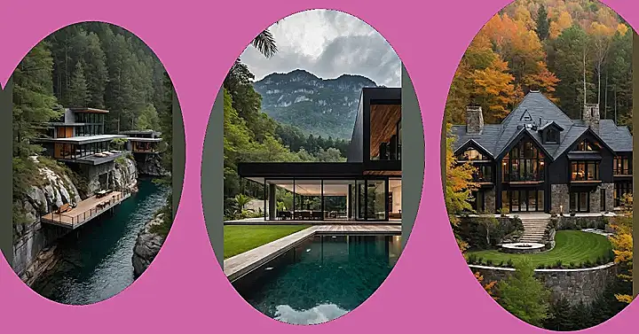 Let’s not forget the ‘forest’ part of these amazing forest mansions! This place is practically snuggled into a giant green blanket of trees, making you feel like you’ve got the entire wilderness as your personal playground. Waking up here means hearing actual nature sounds, not just your phone alarm, which is a definite upgrade. You could host the most epic game of hide-and-seek ever, where the losers might just get lost until next Tuesday. And with your own private waterfall trickling into the river, you’d never have to fight for the shower. Just make sure you don’t accidentally mistake a friendly deer for the Amazon delivery driver when your new gaming console arrives!