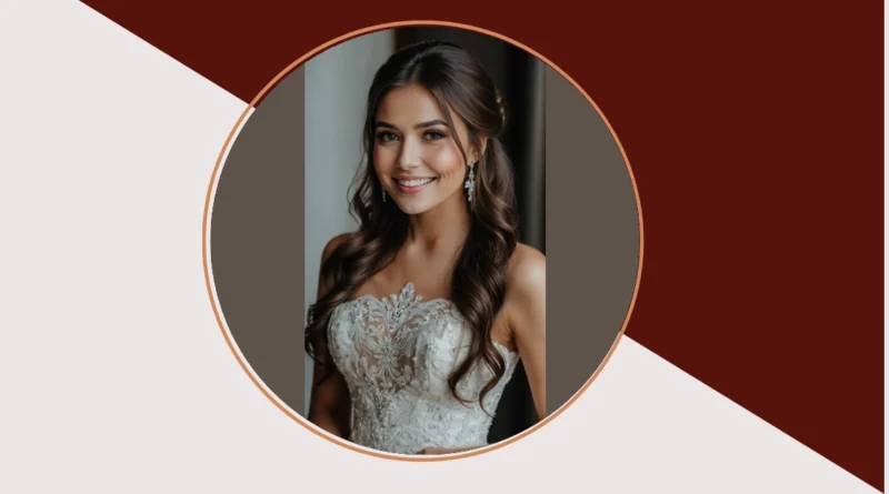 And it’s not just her fabulous brunette waves that are stealing the show; her whole vibe screams ‘happily ever after’ (and maybe ‘I survived wedding planning!’). From the sparkle in her eyes to those epic chandelier earrings, she’s absolutely radiating joy. It’s like she’s saying, “Yep, this is my big day, and I’m ready for my grand entrance, probably without tripping over my dress or accidentally stepping on the groom’s foot!” She looks absolutely stunning, proving that when your hairstyle is on point, and you’ve got that happy glow, nothing can stop you from having the most amazing wedding day, even if Aunt Carol tells that awkward story again.