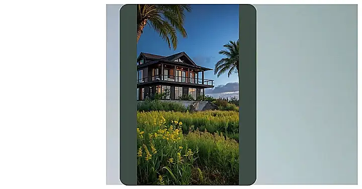 This house looks like a dream come true! It’s nestled in a valley with big, beautiful mountains in the background. The green grass and trees make it feel super peaceful, like you could just relax and forget about all your worries. You can see the house has tons of windows, letting in all that beautiful natural light. It’s like living in a nature scene, but with all the comforts of home.