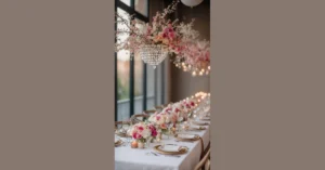 Thinking of low centerpieces for your tables? Greenery with beautiful white blooms can create eye-catching focal points without climbing higher than your guests’ heads! This ensures that conversations flow freely and visibility isn’t compromised. It’s a little design hack that keeps the atmosphere relaxed—perfect for forgetting that you forgot someone’s name!