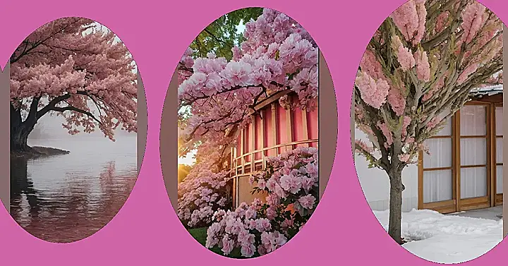 This picture is like stepping into a cotton candy dream! Imagine a house painted the color of a strawberry milkshake, completely covered in a fluffy cloud of pink blossoms. It’s so dreamy and pink, it’s almost too much cuteness for one photo – but don’t worry, we can handle it. It’s the perfect example of a “pink tree aesthetic,” where everything is pretty in pink and super Instagrammable. Seriously, if this was a real place, I’d be moving in immediately!