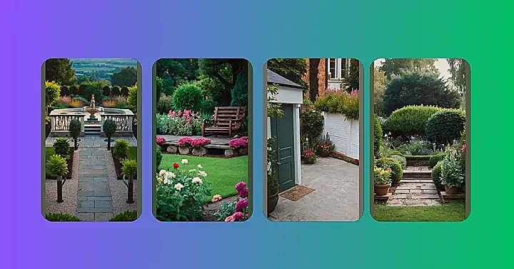 This picture is like a secret portal to a dreamy garden. It’s got everything a garden needs: lush green bushes, a path made of stepping stones, and a bunch of colorful flowers that look like they could tell you secrets if you whispered close enough. The path leads you through a maze of beautiful plants, and you can almost imagine a friendly gnome hiding in the bushes, ready to give you a tour.