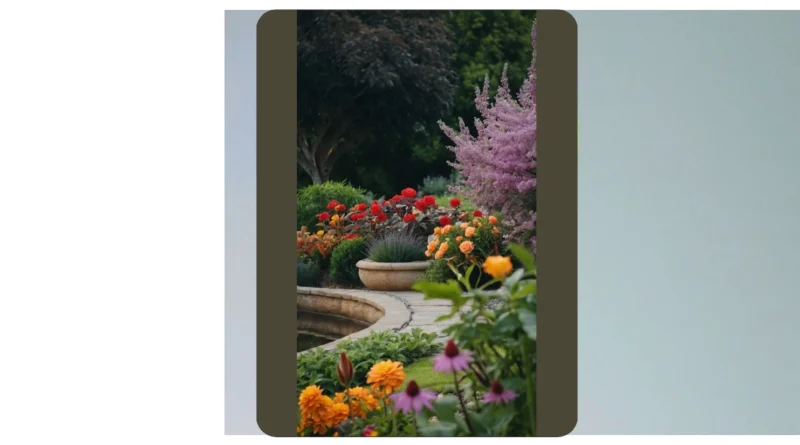 This isn’t just any garden; it’s a burst of color that’s so bright, it practically explodes with happiness! Imagine a giant stone pot overflowing with fiery red begonias, like a party just waiting to happen. Around it, a mix of sunny yellows and oranges, like a rainbow spilled across the lawn. It’s the kind of place where butterflies would throw a rave, bees would do the conga, and even grumpy garden gnomes would crack a smile. Seriously, it’s like stepping into a postcard – but way more awesome!