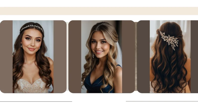 Woah, check out this hair! It’s giving off major “future Mrs.” vibes, and honestly, we’re obsessed. This isn’t just a hairstyle; it’s a masterpiece that says, “I’m ready for my close-up!” We love how it’s half-up, half-down with those gorgeous waves, giving you the best of both worlds – elegant for all the fancy photos, but still super fun and flowy. And that sparkly headband? It’s basically a crown, making sure everyone knows you’re the star of the show, dazzling brighter than any disco ball.