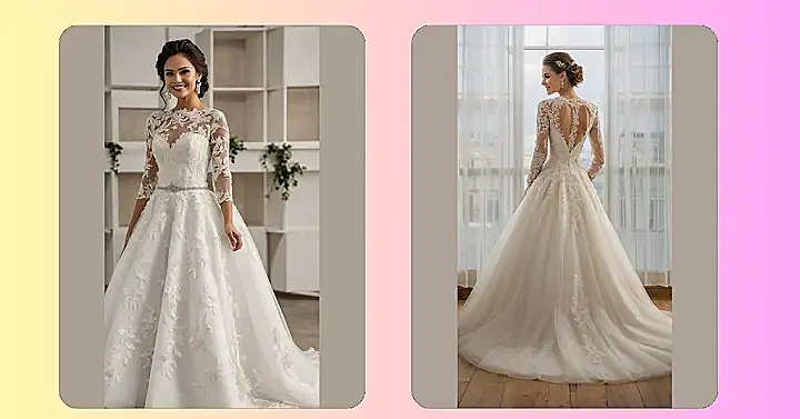 Whoa, this dress is definitely princess-level! You’ll be the queen of your own castle (or, you know, the venue you rented). It’s got all the lace and tulle to make you feel like you’re starring in your own rom-com, complete with a happy ending…and maybe even a slow-motion dance or two. Just remember to practice your royal wave!