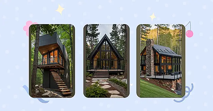Seriously, who needs a flat, boring path when you can have a super cool wooden staircase winding its way up to your amazing forest getaway? With huge windows offering stunning views, this cabin is the perfect blend of nature and modern design. This isn’t just a place to sleep; it’s an adventure waiting to happen. So, ditch the ordinary and embrace the extraordinary – your dream cabin in the woods is closer than you think!