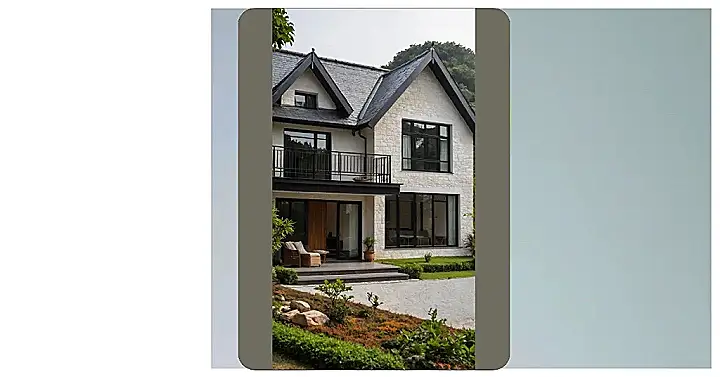 Check out this place! If this is what they mean by “village house design” now, I guess my mental image of a cute cottage with smoke puffing from a chimney needs a serious update. This doesn’t scream “borrow a cup of sugar from the neighbours” but more like “host a fancy party where everyone wears sunglasses indoors.” With stone walls and huge windows, it looks less like a place where you’d hide from the rain and more like a giant display case for how awesome your life is. That balcony is basically begging for someone to stand on it dramatically, maybe just to announce they’ve found the best Wi-Fi signal in the entire village.