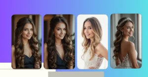 Half-up, half-down hairstyles are all the rage and for good reason! It’s such a versatile style, allowing you to play with bangs and show off those glorious curls. Don’t you just love the idea of a soft, romantic vibe with a splash of modern twists? Add flowers, and you’ve got a look that’s picture-perfect for any bridal magazine!