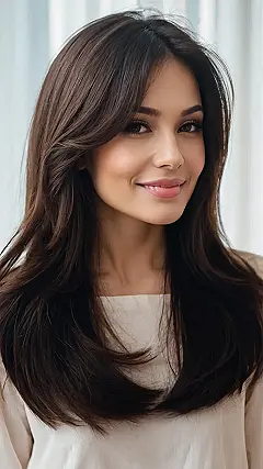 Getting a haircut like this is basically like giving yourself a built-in Instagram filter! Those layers? They’re not just there for fun; they’re strategically placed to frame your face and make you look like you’re ready to star in a rom-com. Plus, you could probably spend all day flipping your hair, which, let’s be real, is a pretty good way to spend a Saturday.