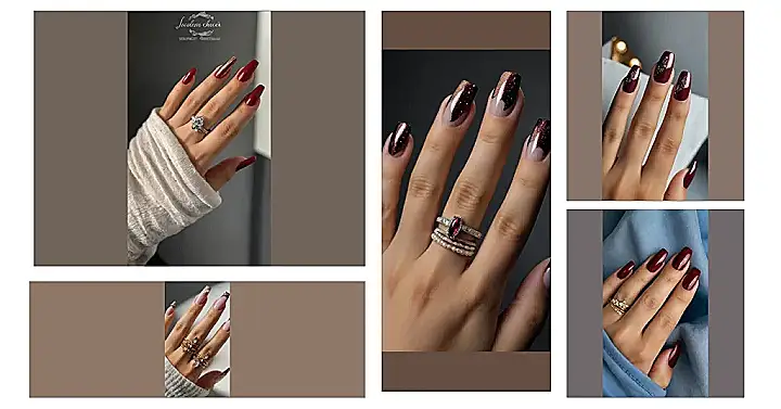 These nails are the perfect way to add a touch of fall flair to your look. They’re like a cozy autumn sweater for your fingertips! The rich burgundy color is perfect for the changing leaves and the sparkly gold details are like a touch of magic. Imagine how awesome these would look with a cute sweater and your favorite pair of jeans – you’d be the coolest kid in school!