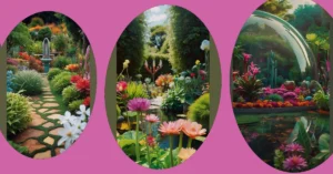 This picture looks like a scene straight out of a fairytale! Imagine yourself walking down a path, the air crisp and cool, as the sun dips below the horizon. The golden light paints the sky with magical hues, while the colorful flowers on either side of the path seem to be whispering secrets to the breeze. It’s like stepping into a magical garden where everything is just a little bit brighter and more beautiful than usual.