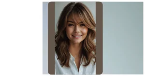 The image shows a gorgeous lady with a smile that could light up a room, and her hair? Well, that’s the star of the show! It’s a “bronde” color, which is a fancy way of saying brown with blonde highlights. But this isn’t just any old highlighting, oh no! It’s a “balayage,” which means the colors blend together super smoothly, like a sunset painting across her hair. It’s totally natural-looking, which is exactly what we all want, right?