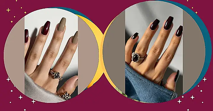 Those nails are looking *seriously* good! It’s like they’re whispering, “Fall is here, and I’m ready to rock this season.” That dark red is like a cozy sweater for your fingers, perfect for sipping hot cocoa and watching spooky movies. It’s like a little secret that says, “I’m not afraid of a little darkness, I embrace it!” And those rings? They’re the perfect finishing touch, like a sparkly accessory for a night out.