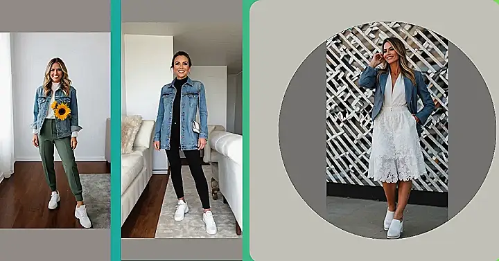 This is what I call “Mom-chic,” and it’s totally a vibe. This woman looks comfy and put-together without trying too hard. The denim jacket is a great way to add a bit of edge, while the black leggings and white sneakers keep things casual and cool. Plus, who doesn‚Äôt love a little white purse? It‚Äôs a great way to add a pop of color and keep your essentials close at hand. This outfit is perfect for anything from grocery shopping to grabbing coffee with friends!