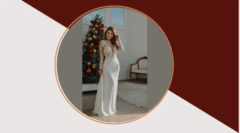 Check out this dazzling look! This stunning white gown, complete with intricate lace and a fantastic train, definitely screams “big deal,” especially next to that festive tree. Now, when you’re thinking about your New Year’s Eve outfit ideas for 2025, are you aiming for this level of red carpet glam? Unless you’ve secretly booked a castle for your midnight countdown or decided to get married right as the clock strikes twelve, this might be a *smidge* much for a casual pajama party or hanging out with friends. Just picture trying to navigate the snack table or bust a move on the dance floor in all that fabulous fabric!
