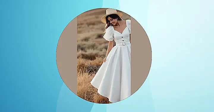Imagine rocking this dress to a summer party – you’d be the queen of the lemonade stand, for sure! It’s like sunshine in fabric form, perfect for showing off your style without overheating in the blazing sun. Those puffy sleeves are giving major princess vibes (but, like, a princess who can totally handle a water balloon fight).