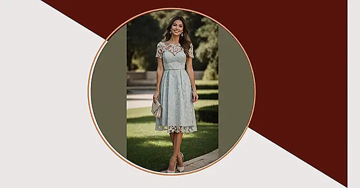 Look closely at all that gorgeous lace detailing – it makes the dress look so soft and pretty, almost like a fancy cloud you can wear! That sweet shade of blue is spot-on for a daytime wedding or an outdoor ceremony, making you feel effortlessly chic without having to wear a super uncomfortable gown. Paired with that cute little clutch, you’re perfectly ready to celebrate, maybe awkwardly dance to the Macarena, and definitely get in line for the cake. This outfit truly says, “I came to celebrate, and yes, I dressed for the occasion… and maybe for the open bar.”