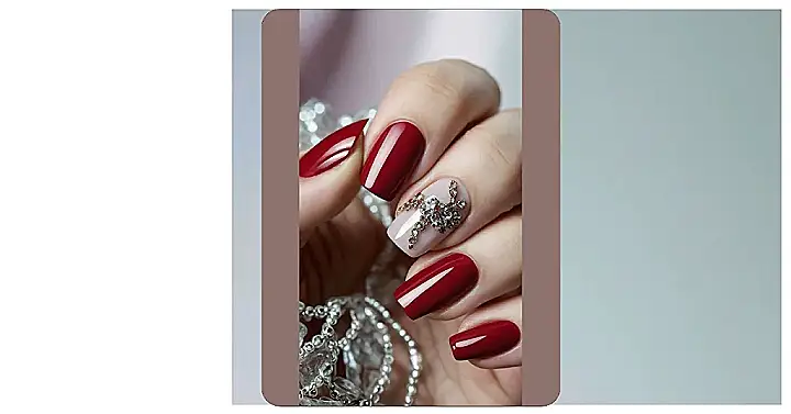 But wait, there’s more! One nail decided it wasn’t just going to be pretty; it wanted to be a whole party on its own. That sparkling design looks like someone glued tiny diamonds and rubies right onto your finger – talk about a statement piece! You’ll be waving your hand around all month just to catch the light and show off your personal little jewelry box. Who needs a fancy necklace when your nails are this blinged out? Get ready to out-sparkle the Christmas tree and maybe even the ball drop on New Year’s Eve!