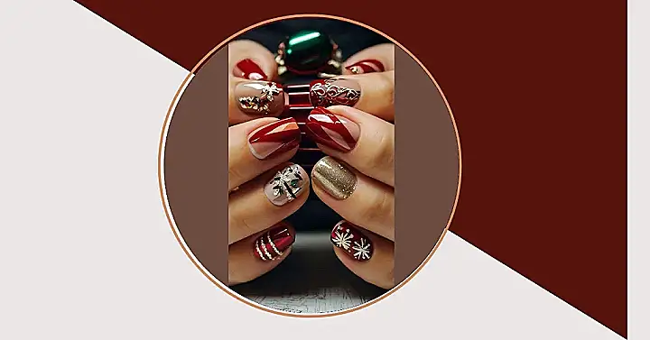 Seriously, how cool are these designs? They’re definitely way more fun than plain old nail polish. The mix of colours and textures is super impressive; it’s festive but still really chic. Plus, think of all the compliments you’ll get – it’s a guaranteed conversation starter! You’ll be the envy of everyone at the school Christmas party (and maybe even your teachers!).