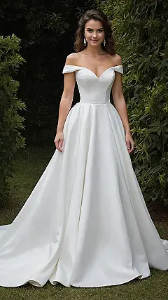 Looking at this stunning white dress, you can almost hear the ‘oohs’ and ‘aahs’ it would get! It’s got that perfect blend of classic elegance with a modern twist, thanks to those cool off-the-shoulder sleeves that practically scream ‘sophisticated queen.’ The fabric looks so smooth and dreamy, you’d think it was spun from actual moonlight. And can we talk about that waistline? It’s so perfectly defined, it looks like it could win awards for ‘best supporting role in making you look amazing.’ It creates that fantastic silhouette that makes you stand tall and feel like you’re floating, even if you just ate a giant slice of pizza beforehand.