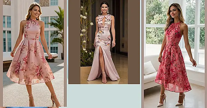 Seriously, though, look at those flowers! They’re so perfectly placed, it’s like a botanical artist designed this dress. And the color? It’s that perfect shade of light pink that makes you look instantly refreshed and happy. Plus, the halter neck and the A-line skirt make it super flattering. It’s the kind of dress that will make you feel confident and pretty, ready to take on the world – or at least, ready for a really awesome Instagram photo.