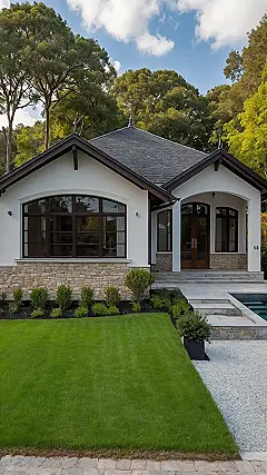 This house has major “relax-mode activated” vibes. The white walls and terra cotta roof give it that warm, vacation-home feel, perfect for doing absolutely nothing important. When you’re brainstorming your own future retirement palace, think about things like a smooth gravel path for easy strolling (or maybe just tripping if you’re not careful) and nice big windows for maximum cloud-watching potential. It’s basically planning your ultimate hideout from responsibility, just with more comfy furniture and fewer chores.