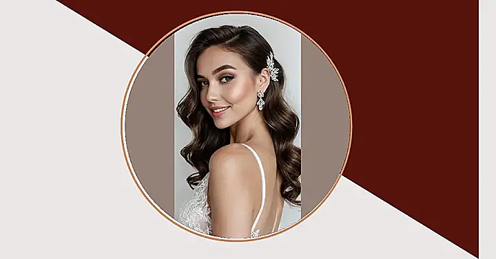 So, you’ve got that shiny new ring, and now it’s time to find a hairstyle that shouts, ‘I’m fabulous and getting hitched!’ This look totally gets it. We’re talking half-up, half-down, which is basically the chill older sibling of a full updo – sophisticated but still ready to party. Plus, that sparkly, jewel-encrusted headband? It’s not just an accessory; it’s a tiny crown telling everyone you’re about to reign over your engagement party with style. It’s the perfect way to make your engagement hairstyles look effortlessly fancy without feeling like you have a skyscraper on your head.