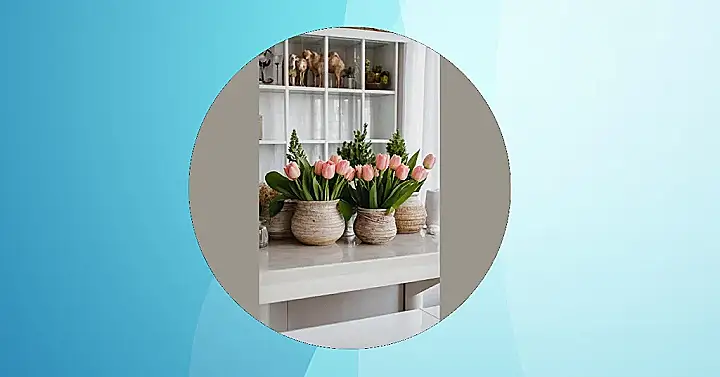 Look at these gorgeous pink tulips, standing tall and proud like they just won a beauty pageant! They’re basically the ultimate cheerleaders for your living space, screaming “Good vibes only!” without making a sound. Tucked into those cool, earthy pots, they’re not just sitting there; they’re actively making your home feel instantly cozier and way more stylish. Forget those sad, droopy plants you might be trying to keep alive in your room; these tulips are here to prove that bringing a splash of nature indoors doesn’t have to be a botanical battle. They’re making home flower decor look ridiculously easy and wonderfully chic.
