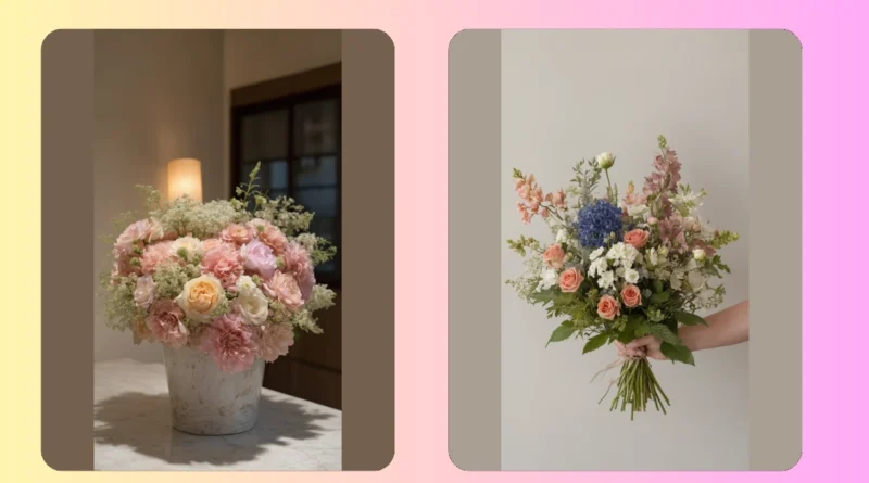 Looking closer, these aren’t just random blossoms thrown together; these flower arrangements are basically botanical works of art! With soft pinks and crisp whites cuddling up to unexpected pops of blue, all nestled in a forest of lush greenery and funky dried bits, they’ve got personality for days. You can almost imagine the person who made them having a blast, thinking, “How many cool flowers can I stack before it becomes a leaning tower of petals?” They’re definitely proving that a good flower arrangement can totally steal the show, even if they’re just chilling against a wall.