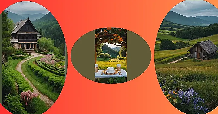This image is like a picture straight out of a fairytale! Imagine waking up in a cozy cabin, the sun shining through the window, and looking out at a breathtaking landscape. It’s the kind of view that makes you want to grab a cup of coffee and just sit and soak it all in. The rolling hills, the lush green meadows, and the bright flowers all add up to a picture-perfect scene.