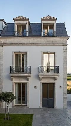 Isn’t this house super cool? It’s got that super fancy French vibe with all the straight lines and big windows, but it also looks really cozy, like something out of a modern fairy tale. Imagine hanging out on one of those balconies with your friends, sipping on sparkling cider and pretending you’re in a movie. It’s not your typical old-fashioned French château; it’s like France decided to move to the 21st century and bring all the coolest design ideas with it!