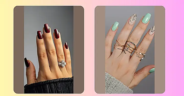 Feeling kinda plain? Your nails don’t have to be! This picture proves that it’s totally cool to mix it up! You could go for a classic red that screams “I’m confident,” or try out some artsy designs like colorful butterfly wings. It’s like a whole mini art gallery right at your fingertips!