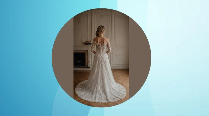 That fabulous shaping around her waist? That’s where the magic of a Basque waist often comes in! It creates this super flattering line, sometimes dipping a little lower to give you this really cool, elongated look that makes you feel like royalty. Plus, with all that delicate lace covering her back and those long, intricate sleeves, it’s proof that sometimes, covering up can be even more stunning than showing a lot of skin. You just know she’s feeling like the star of the show, even if she has to strategize a bit to make it to the snack table or pull off those epic dance moves later. But hey, for a dress this breathtaking, it’s totally worth it to be the main character for a day!