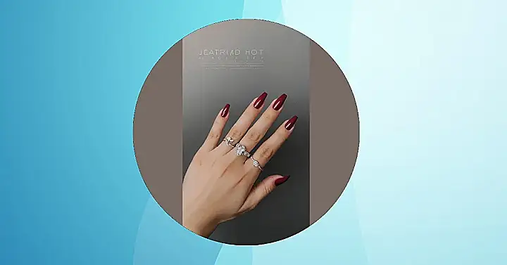 These nails are like a warm cup of apple cider on a chilly fall day – cozy, comforting, and totally on-trend! That deep burgundy color is the perfect match for all those pumpkin spice lattes and sweater weather vibes. And don’t even get me started on the shine! It’s like a little bit of sunshine peeking through the autumn leaves. You could totally rock these nails with a pair of ripped jeans and a cozy cardigan, or even dress them up for a fancy fall party. They’re just the right amount of glam for any occasion!