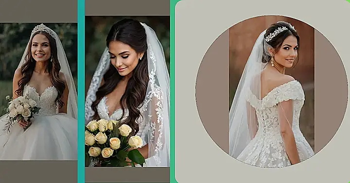 This bride is rocking a hairstyle that is truly fit for a princess! Her hair looks amazing, with soft, flowing waves that cascade down her back. But the best part is that she’s wearing a veil that’s so long, it looks like it could float away in the wind. It’s like she’s got her very own superhero cape ‚Äì except instead of fighting crime, she’s getting ready to say “I do!” And don’t forget about that crown! It’s sparkling and adds a touch of royalty to her whole look.