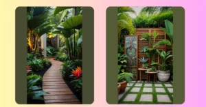 The evergreen tree in the planter adds a touch of color and a whimsical feel to the scene. The other plants are brave, too, even though they’ve lost most of their leaves, they’re still hanging in there, adding a dash of green to the winter wonderland. And that snow-covered tree branch? It just adds to the magic!