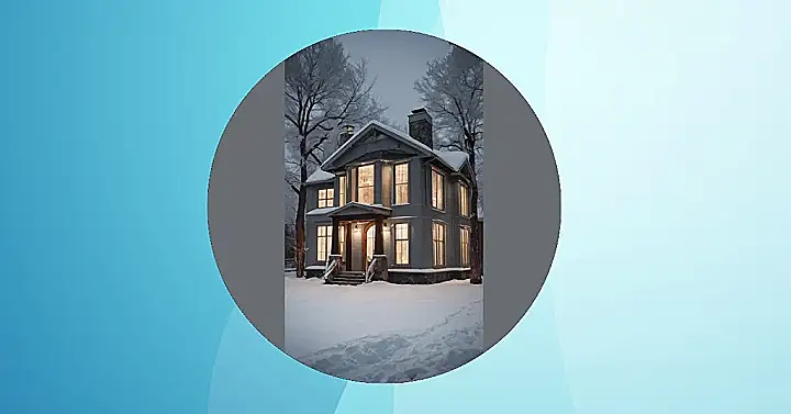 This picture is the perfect example of a winter house exterior! Imagine snuggling up inside that warm, inviting house, watching the snow fall while sipping hot cocoa. The warm glow of the lights peeking through the windows makes it look super cozy and like the perfect place to spend a snowy evening playing board games with your family, telling stories, or maybe even sneaking in some extra hot chocolate. It’s giving major “snow day” vibes!
