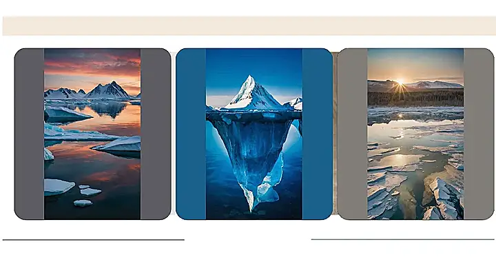Then there are these cool chunks of ice just floating around in the water, from huge ones that look like misplaced building blocks to smaller bits that are just little ice accessories. The water isn’t just blue; it’s this deep, cool shade that makes you wonder how many shades of blue actually exist out there. They’re all just drifting along, probably bumping into each other like polite icebergs saying, “Excuse me, pardon me, just floating through.” It’s a wild, beautiful scene that makes you feel tiny and reminds you how much amazing stuff is out there!