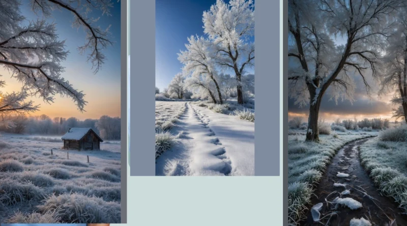 And then there’s that sunrise, totally showing off with its fiery orange glow! It’s like the sun heard everyone was chilling out and decided to warm things up with a super dramatic entrance. Peeking over the distant trees through a whisper of mist, it paints the sky in incredible blues and oranges, making this whole frosty landscape look absolutely epic. Honestly, it’s so stunning, you’d probably want to slap it on your phone or laptop as your new ‘frosty landscapes wallpaper’ – just be glad you don’t actually have to stand out in that chill to enjoy it every day!