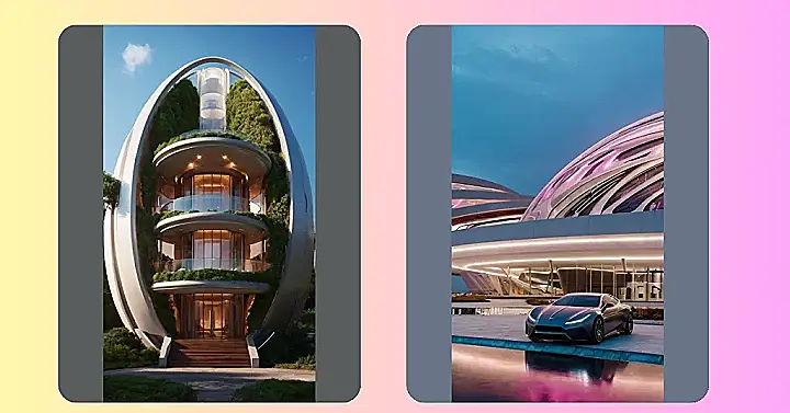 If you took a time machine to the future, maybe you’d see buildings just like this everywhere! They’re so futuristic, it’s almost like they’re from a movie. Imagine living in a house that looks like a spaceship, with glow-in-the-dark lights and a secret swimming pool in the middle of the living room. It’s like a super cool treehouse, but instead of branches, it has curvy walls and awesome pink lights!